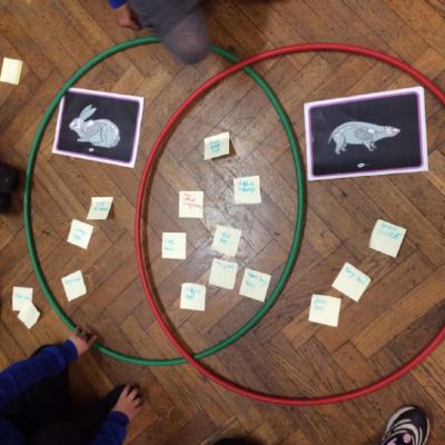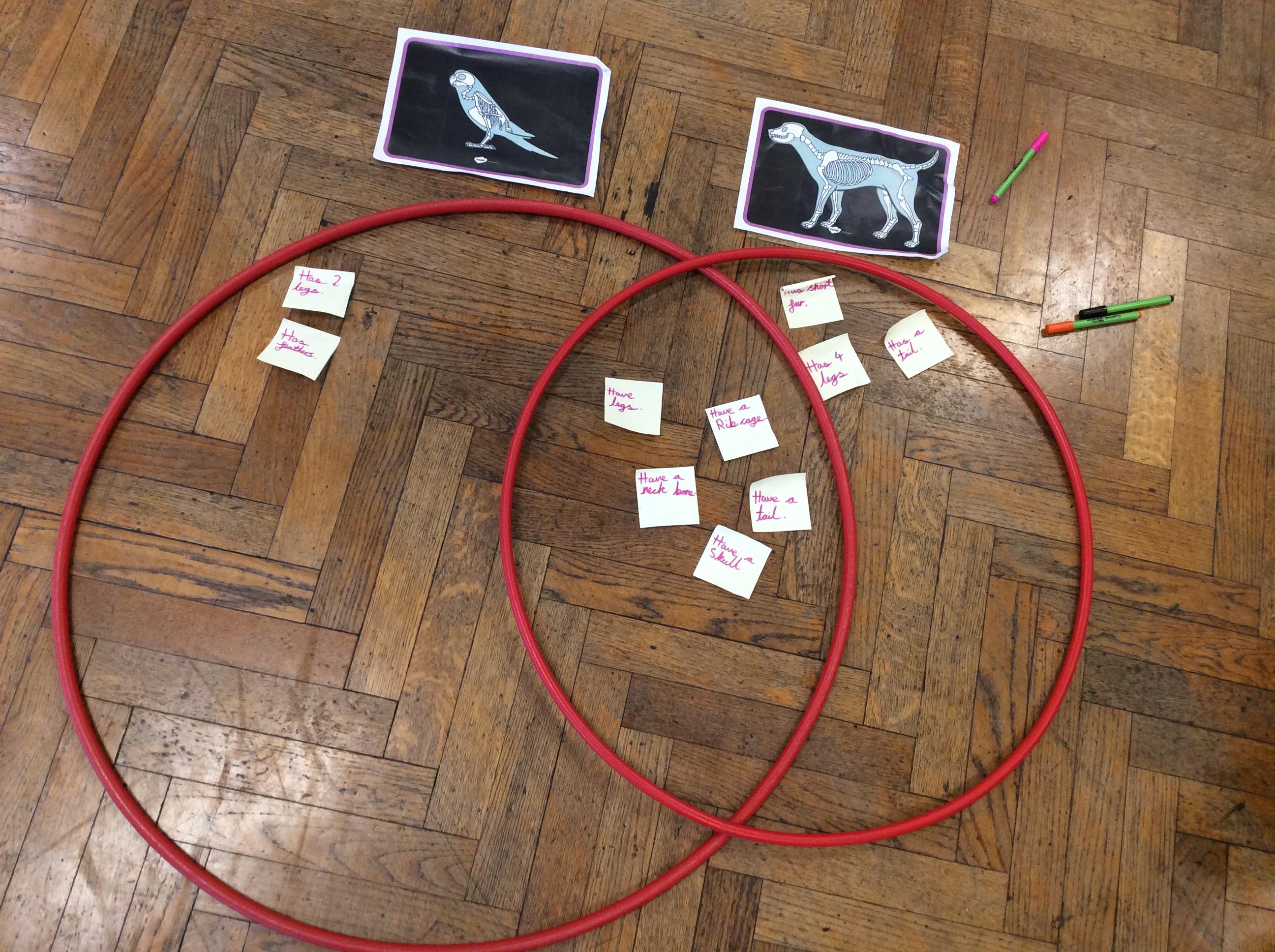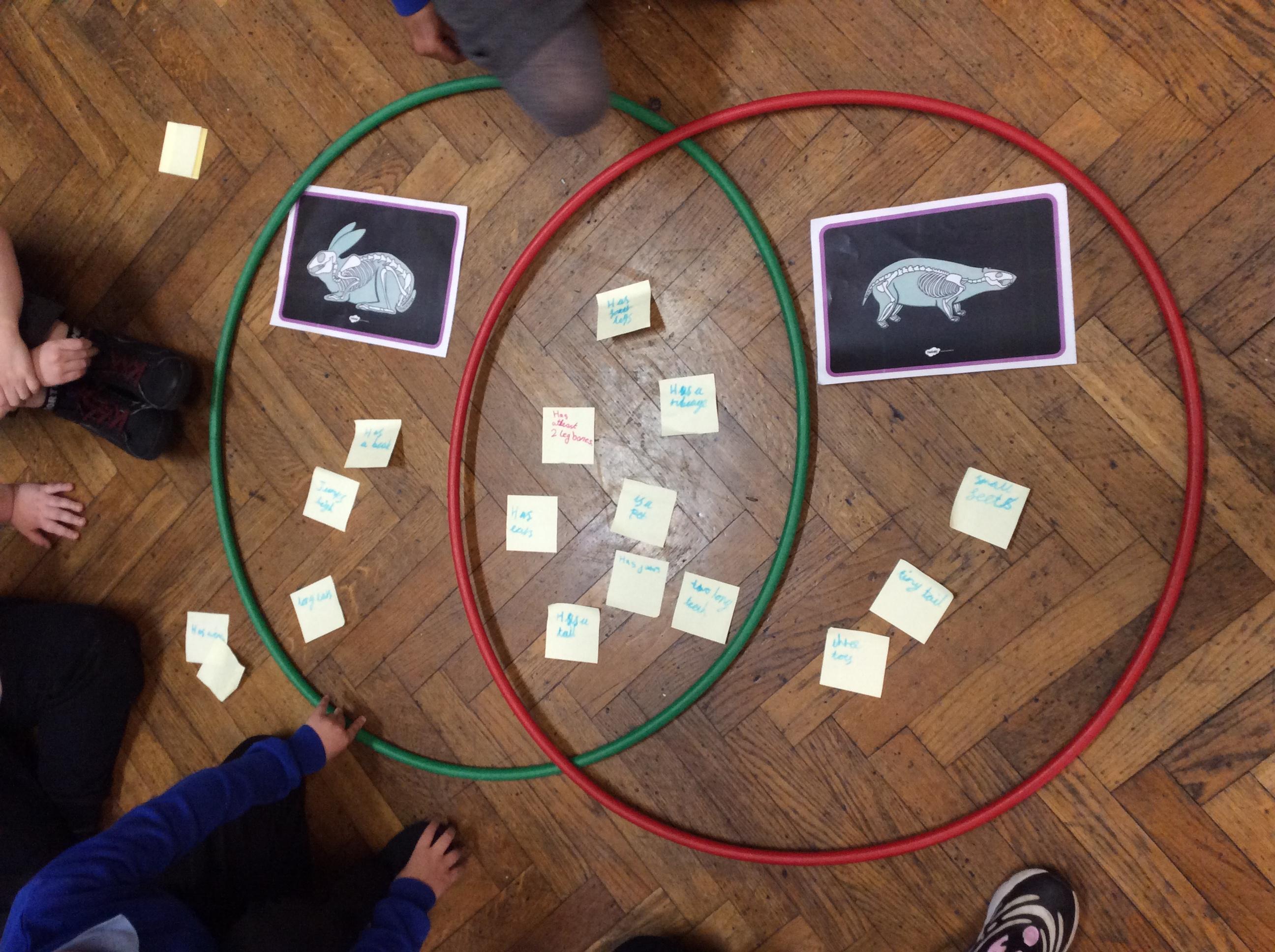 Children were investigating the similarities and differences between different animal skeletons. They recorded their findings in a Venn diagram.